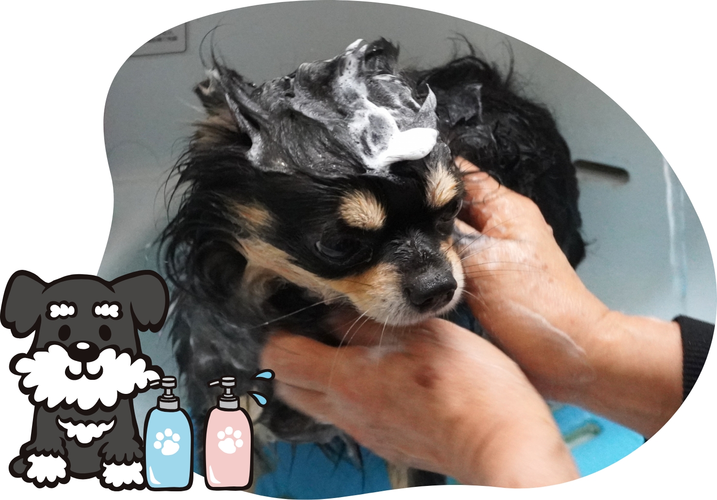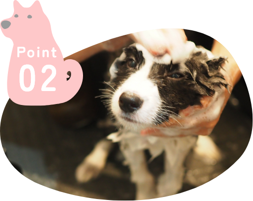 皮膚の弱い子にも動物病院使用のシャンプーを特別料金なしで使用しています。